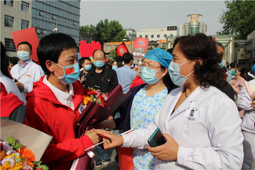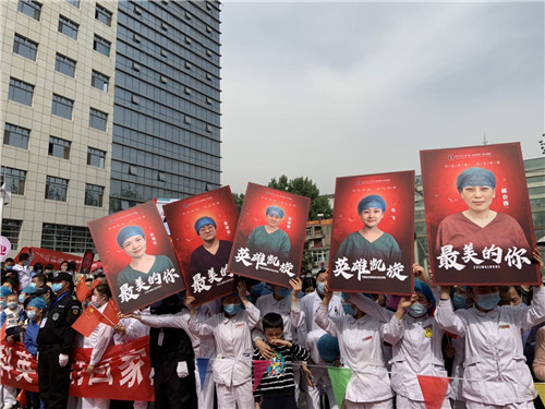 医疗队护士代表刘艳琴在发言时说:“平安回到医院大家庭,回到家人的身边,心情非常激动。在武汉一线50余天的工作经历收获了感动和成长,它将是我人生当中最难忘的记忆。在前线,所有的护理人员都在竭尽全力将二院护理人的关爱带给这里的每一位病患。待返回工作岗位,我们会继续努力工作,把不畏艰难的精神在工作岗位上发扬光大。此次抗疫,我深深体会到没有强大的国就没有幸福的家,祝福我们伟大的祖国繁荣昌盛!”