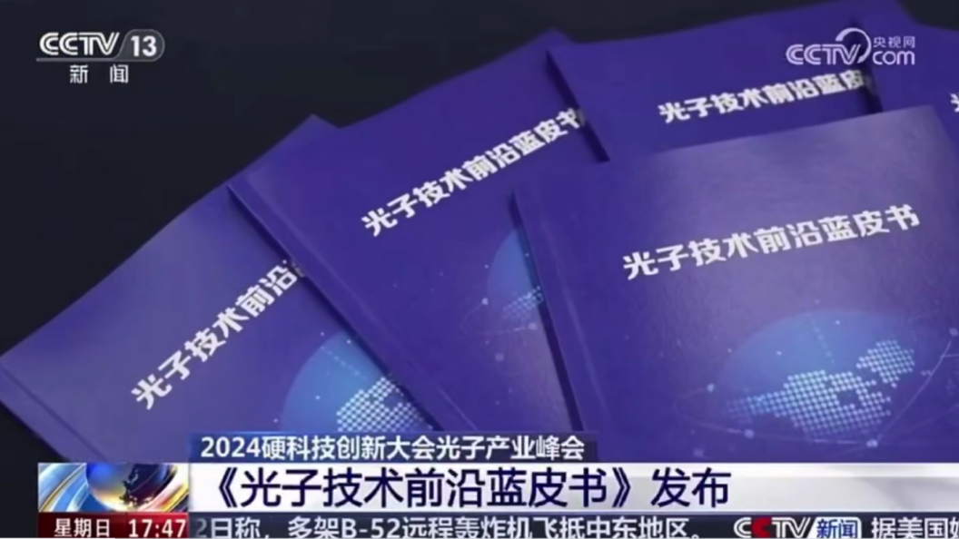 △11月3日,CCTV13频道《新闻直播间》报道聚焦大会上发布的《光子技术前沿蓝皮书》这一内容