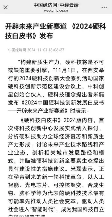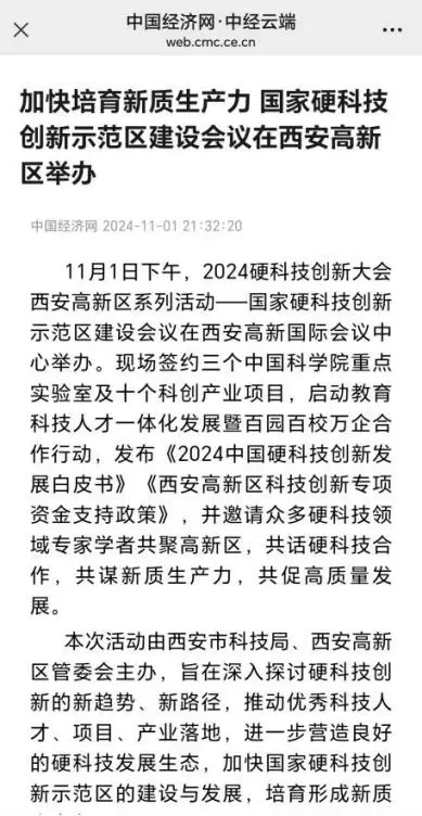 中国经济网连续两次刊发文章《开辟未来产业新赛道 <2024硬科技白皮书>发布》《加快培育新质生产力 国家硬科技创新示范区建设会议在西安高新区举办》,聚焦高新区硬科技产业发展,构建“科创高新”高质量发展新引擎。