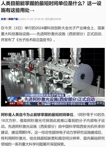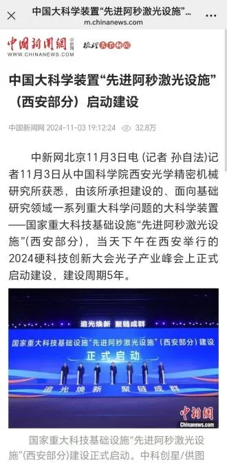 △11月3日,CCTV13频道《新闻直播间》报道聚焦大会上国家重大科技基础设施“先进阿秒激光设施”(西安部分)建设启动这一内容