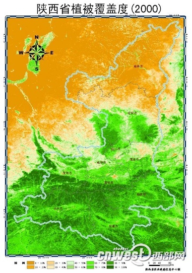2000年,陕西植被覆盖度图