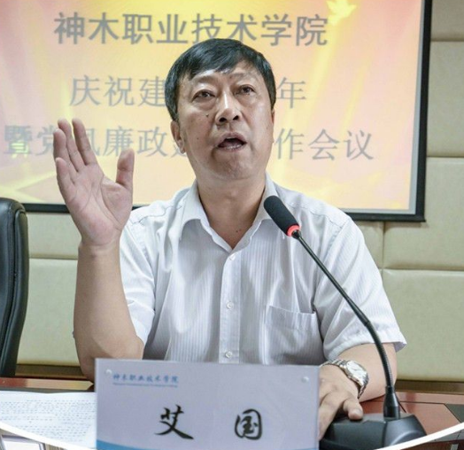 神木职业技术学院校长艾国发表主题为“不忘初心•牢记使命•践行担当•落实责任”的重要讲话。