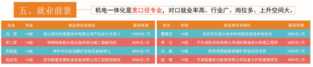 机电一体化是宽口径专业,对口就业率高、行业广、岗位多、上升空间大。