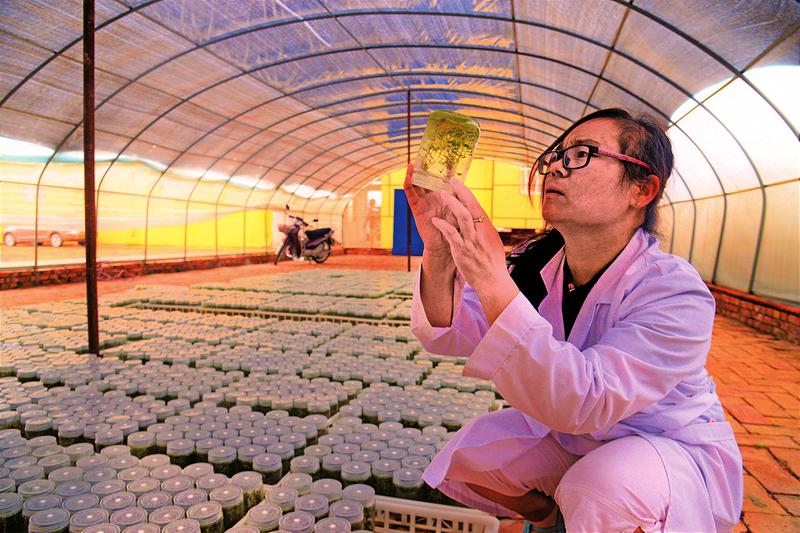 靖边技术人员正在观察马铃薯原原种育种情况。 本报通讯员 曹晔 摄