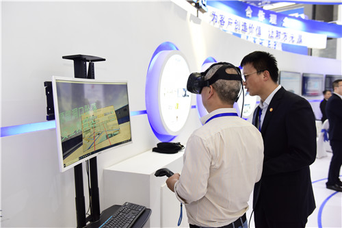 2019年丝博会上,用户在陕建展厅,体验智慧工地建设系统