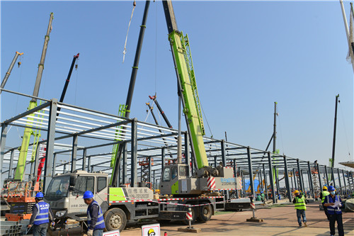 为加快施工进度,倒排工期,发挥陕建设计、加工、施工优势,仅用12小时就完成基础施工,“逆作法”安装钢柱,钢柱先于基础施工,8小时完成3000件钢构件加工制作,7个小时完成钢结构安装,8小时完成屋墙面施工,24小时完成成套污水处理泵站……一个个节点任务,在争分夺秒中完成。期间仅用8小时完成机场飞行区核酸检测区项目。