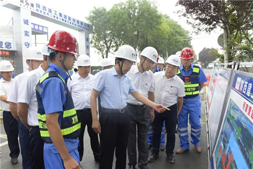 7月15日,陕建集团党委书记、董事长张义光率队到陕建铁建工程部承建的西安地铁二号线二期施工总承包一标段项目调研,慰问一线管理人员和工人,并主持召开铁建工程部领导班子、部门负责人、项目部负责人参加的座谈会。