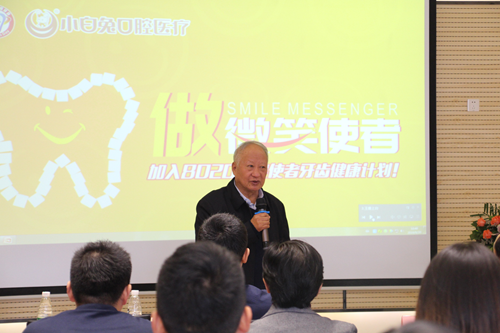 在小白兔口腔医疗“8020微笑使者牙齿健康计划”启动会上,小白兔口腔医疗创始人王鸿应董事长,详细介绍了“8020微笑使者牙齿健康计划”内容,及小白兔口腔医疗此次活动的社会公益意义。