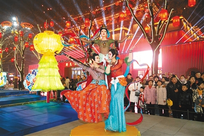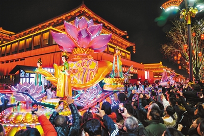 本报讯(记者 雷县鸿)一边是以巨鼓为背景的舞台,代表来自西域的花车,车上帷幕轻飘,胡姬旋转跳跃,腰铃叮当,充满异域风情;另一边则是“排灯”高照,大唐舞姬发髻高耸,服饰飘逸,正在表演宫廷乐舞……这些似曾相识的场景,今年春节前从《长安十二时辰》“搬”到大唐不夜城了。
