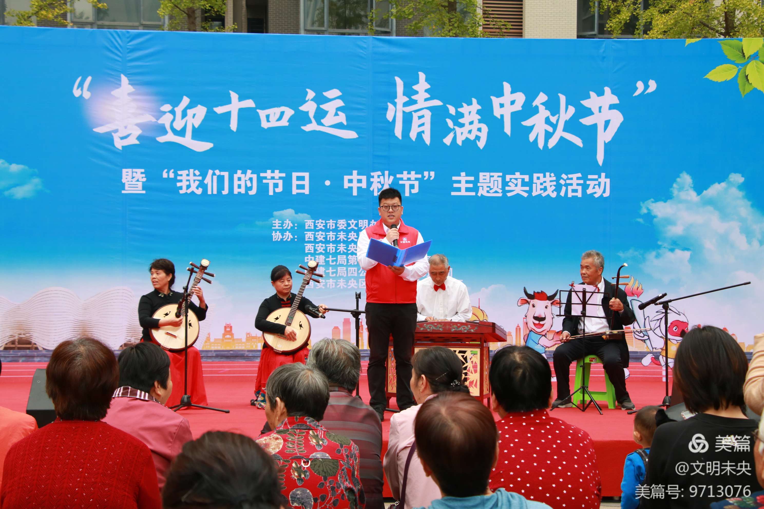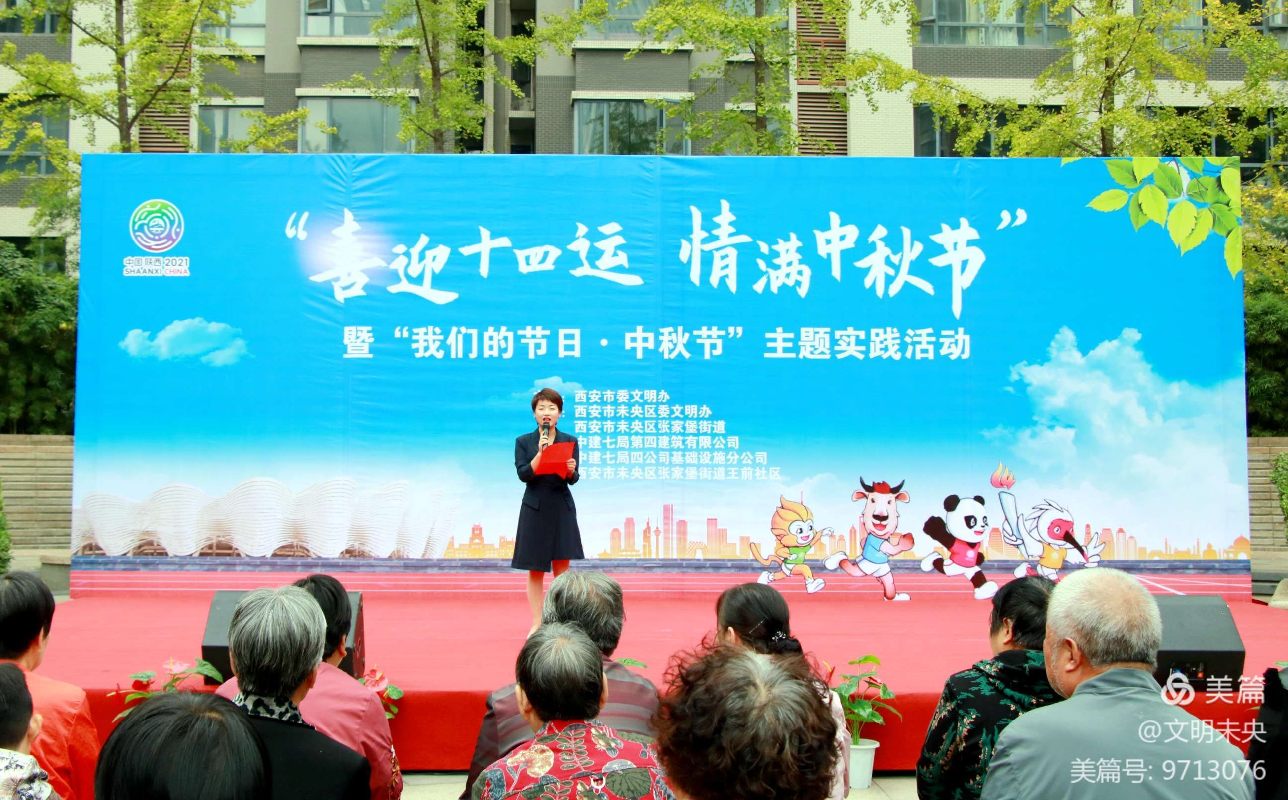 9月25日下午,“喜迎十四运 情满中秋节”——暨“我们的节日·中秋节”传统文化活动在未央区张家堡街道王前社区举办。本次活动由西安市委文明办主办,未央区委文明办、张家堡街道党工委、中建七局四公司联合承办。300多名社区群众和志愿者共同参与,同享中秋文化大餐。