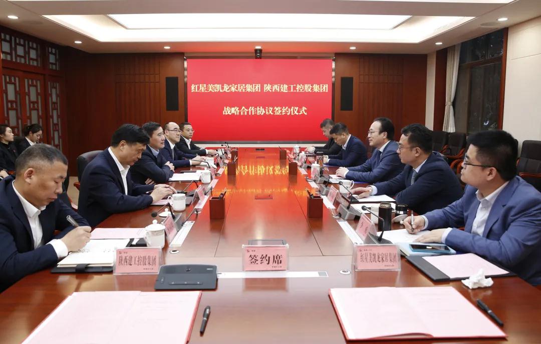 11月19日,陕建集团与红星美凯龙家居集团 签署战略合作协议。陕建集团总经理张文琪,红星美凯龙家居集团总裁、执行董事、党委书记蒋小忠 等领导鉴签,陕建集团副总经理雷晓义、红星美凯龙家居集团发展中心总经理张小敏 代表双方签约。