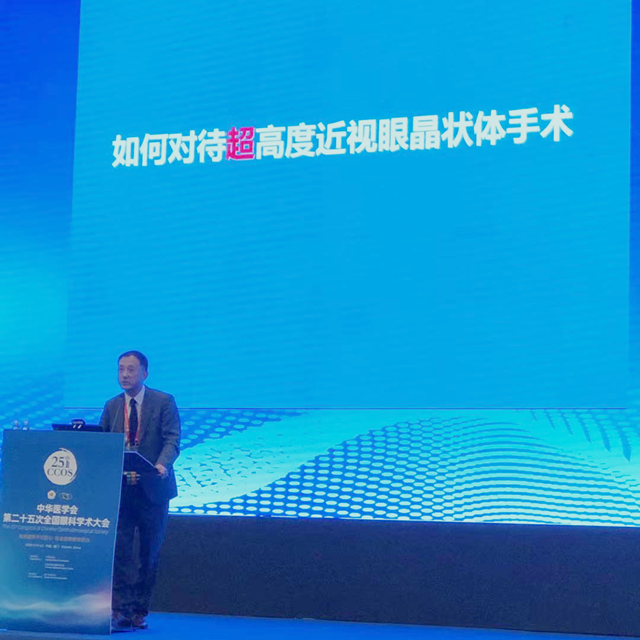 在白内障单元及斜视与小儿眼科单元分别做了题目为《超高度近视的第二眼晶状体手术》及《儿童白内障术后眼轴的变化和斜视》专题发言。