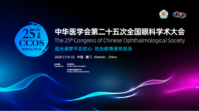 由中华医学会、中华医学会眼科学分会主办,厦门市医学会承办的中华医学会第二十五次全国眼科学术大会于2020年11月19日至22日在厦门国际会展中心举行。本次会议的主旨是“追光逐梦不忘初心,抗击疫情使命担当”。