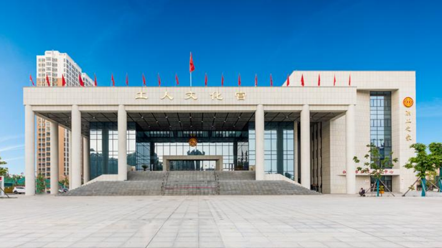 铜川市工人文化宫由 A 区剧场和 B 区职工综合服务楼组成,总建筑面积 21815.2㎡,框架结构,整体地下1层,地上A区3层、B区5 层,建筑高度16.1~23.2m,平面呈“工”字型布局。本工程是集职工文化活动、培训教育、职工综合服务等功能于一体的智能型、绿色节能的 多功能、多用途文化类公共建筑。