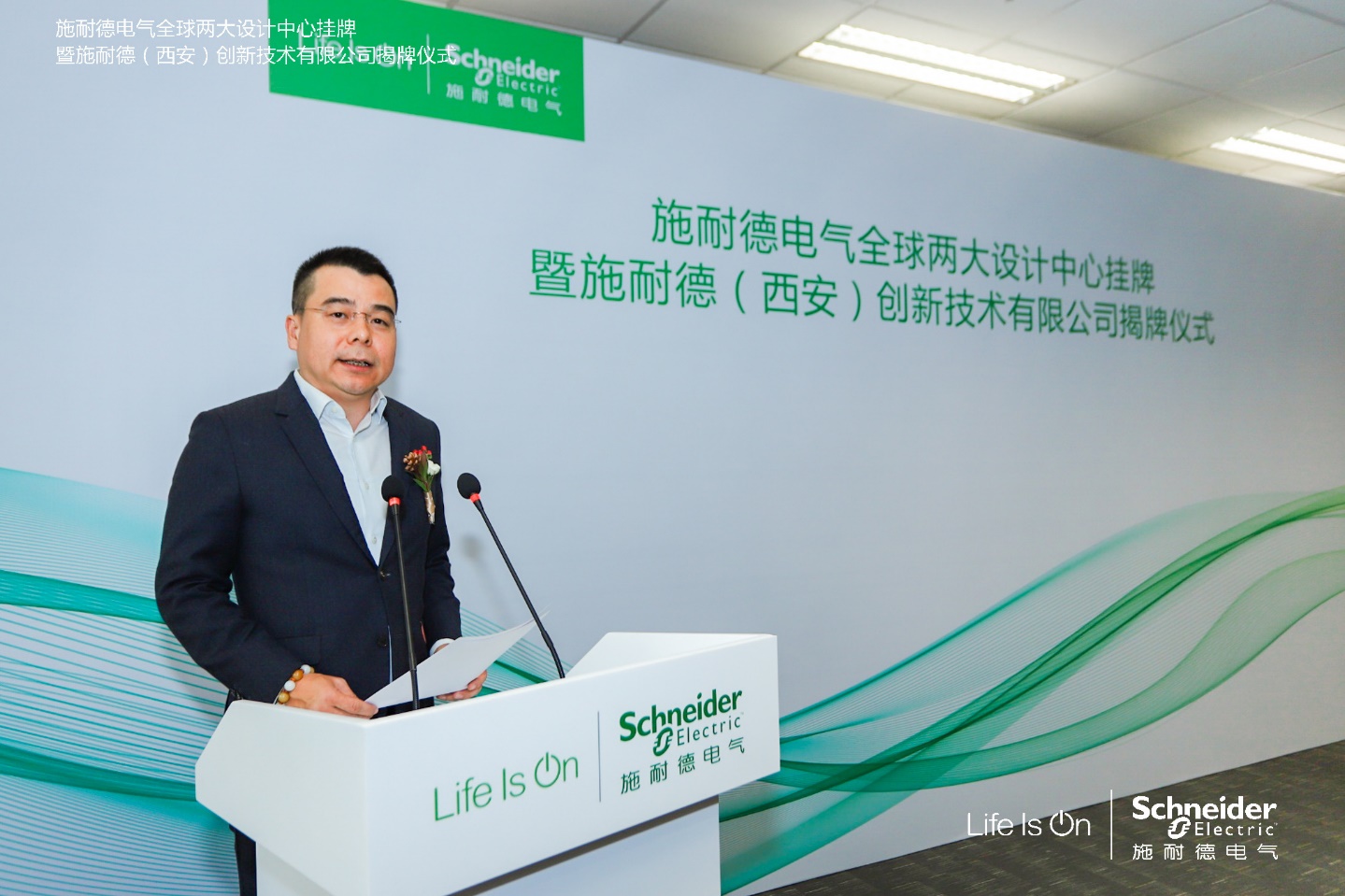 西安市投资局局长黄瑜晖发表致辞并表示,施耐德电气在西安的积极投入,对提升本地产业硬实力和研发软实力均起到了引领作用,已成为促进西安产业数字化升级、实现绿色可持续发展的重要助推力。希望施耐德(西安)创新技术有限公司助力西安进一步提高产业核心竞争力,推动“西安创造”走向全球,共同把握更广阔的市场机遇。