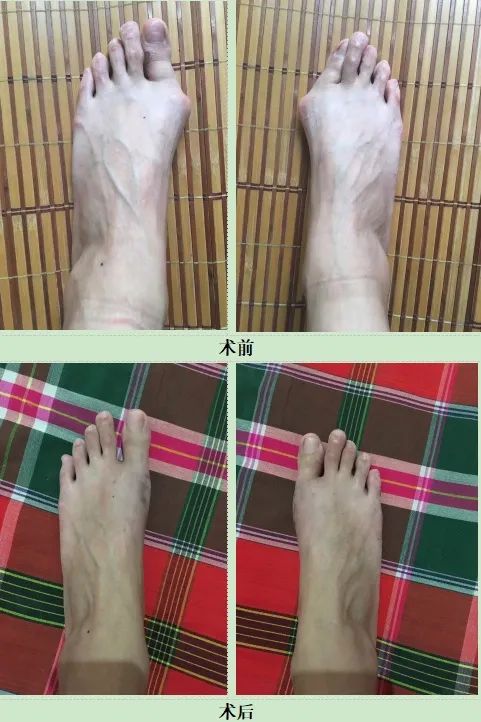 5. 女性,30岁,微创踇外翻术后对比图。