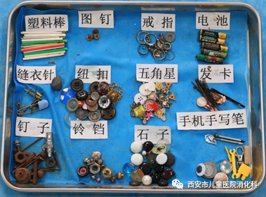 西安市儿童医院消化科每年接诊消化道异物的患儿多达1000余例,也就是说每天1-3例很常见,其中需要收住院,进行内镜下异物取出手术的患儿350余例/年.