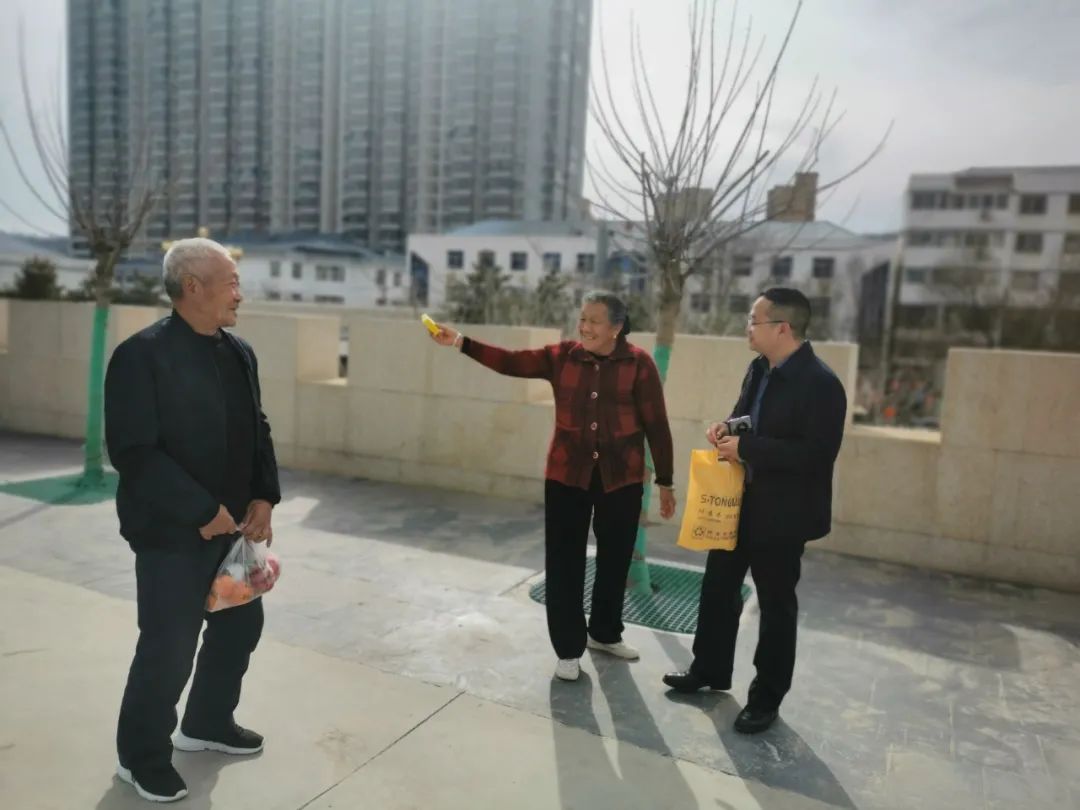 刚刚赶到甘泉县的王健生教授,没走几步便被以往医治过的病人抓了个“现行”。老太太激动的拉着王教授的手,感谢王教授的往日的相助。老人将自己手中的特产送给王健生教授,用最淳朴的方式表示着祝福。面对乡情的热情,王教授无比开心,能被患者记住自己,这么多年的付出也值了。在交谈中王教盛情授邀请老人听自己的健康讲座,希望能为老人带来更多的帮助。