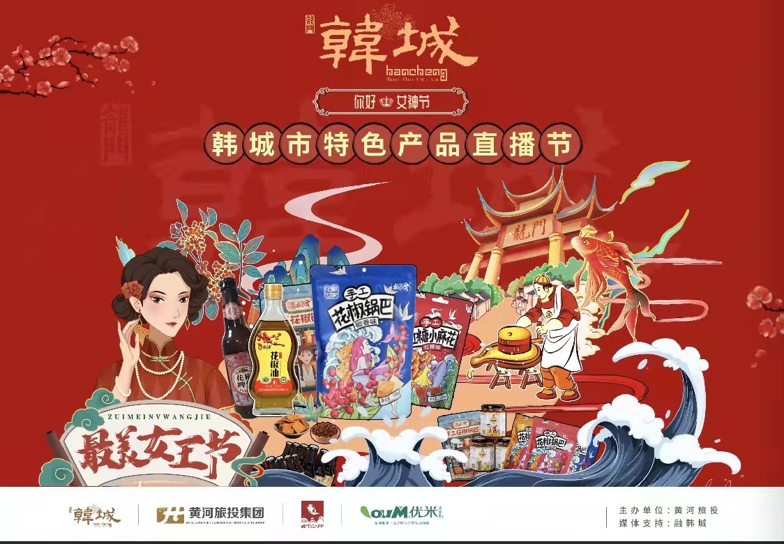 本次直播节,韩城市龙门国际集团精选多重好物,其中不仅有“‘椒’美如你”—花椒锅巴、花椒酸奶、花椒芽菜等花椒系列产品,更有“内‘韩’韵味”的司马迁祠、党家村、黄河明珠大酒店等韩城知名景区、酒店产品,使广大女性在忙碌中的生活,通过视听感受“云”赏美景、“云”尝美食,遇到心仪好物,只需动动手指,即可足不出户,送货到家。