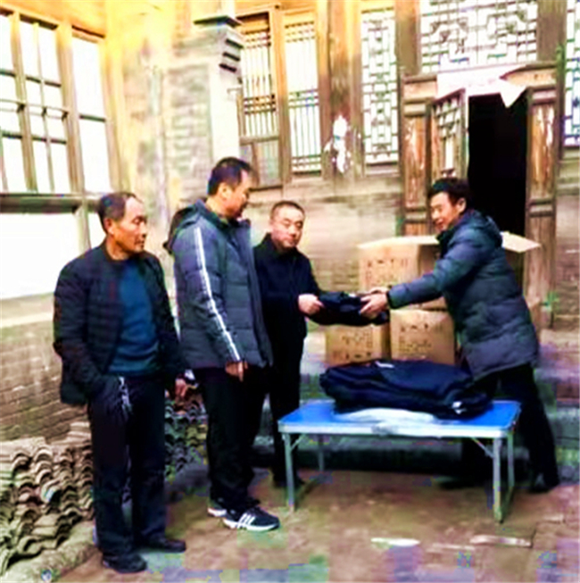 ①冬天里,在爱心人士曹国粱先生支持下,塔寺村领导支持组织,完成给村里有需要的老乡“送温暖”(送羽绒服)公益活动。
