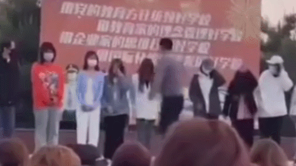 4月12日,有网友发布视频称,在陕西渭南轨道交通运输高级技工学校,十几名学生因早操迟到被一名老师当众依次扇耳光。
