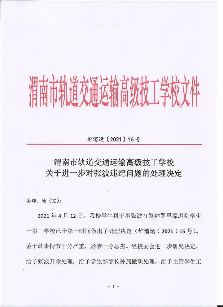 以下是渭南市轨道交通运输高级技工学校发布的事件处理文件: