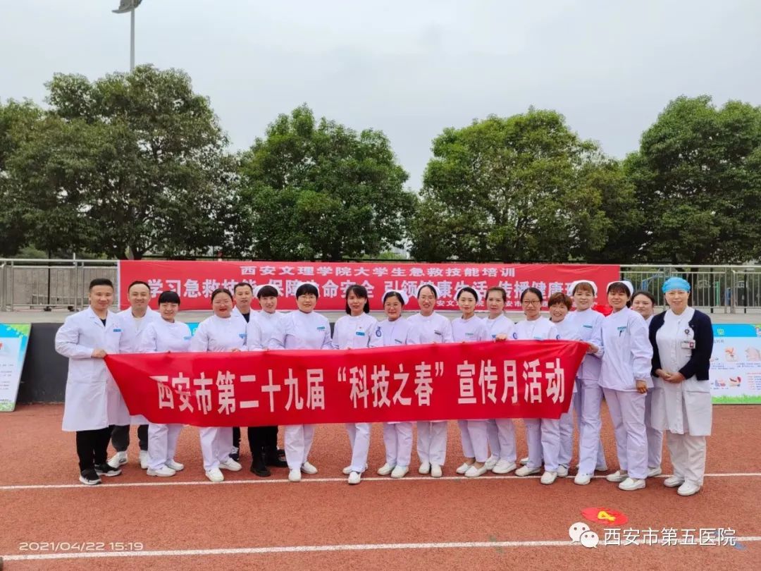 4月22日下午,为积极响应西安市第二十九届“科技之春”活动,在陕西省护理学会急诊专业委员会的组织下,西安市第五医院急诊科前往参加大学生急救技能培训,普及急救知识,传播健康理念。
