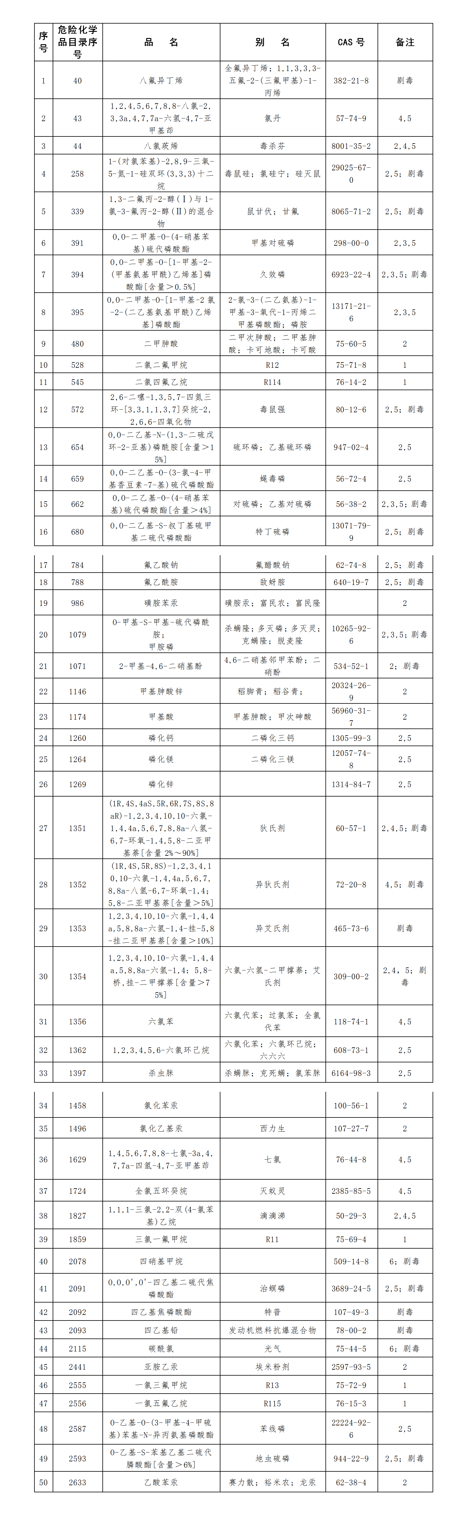 陕西省禁止危险化学品目录(第一批)(共50种)