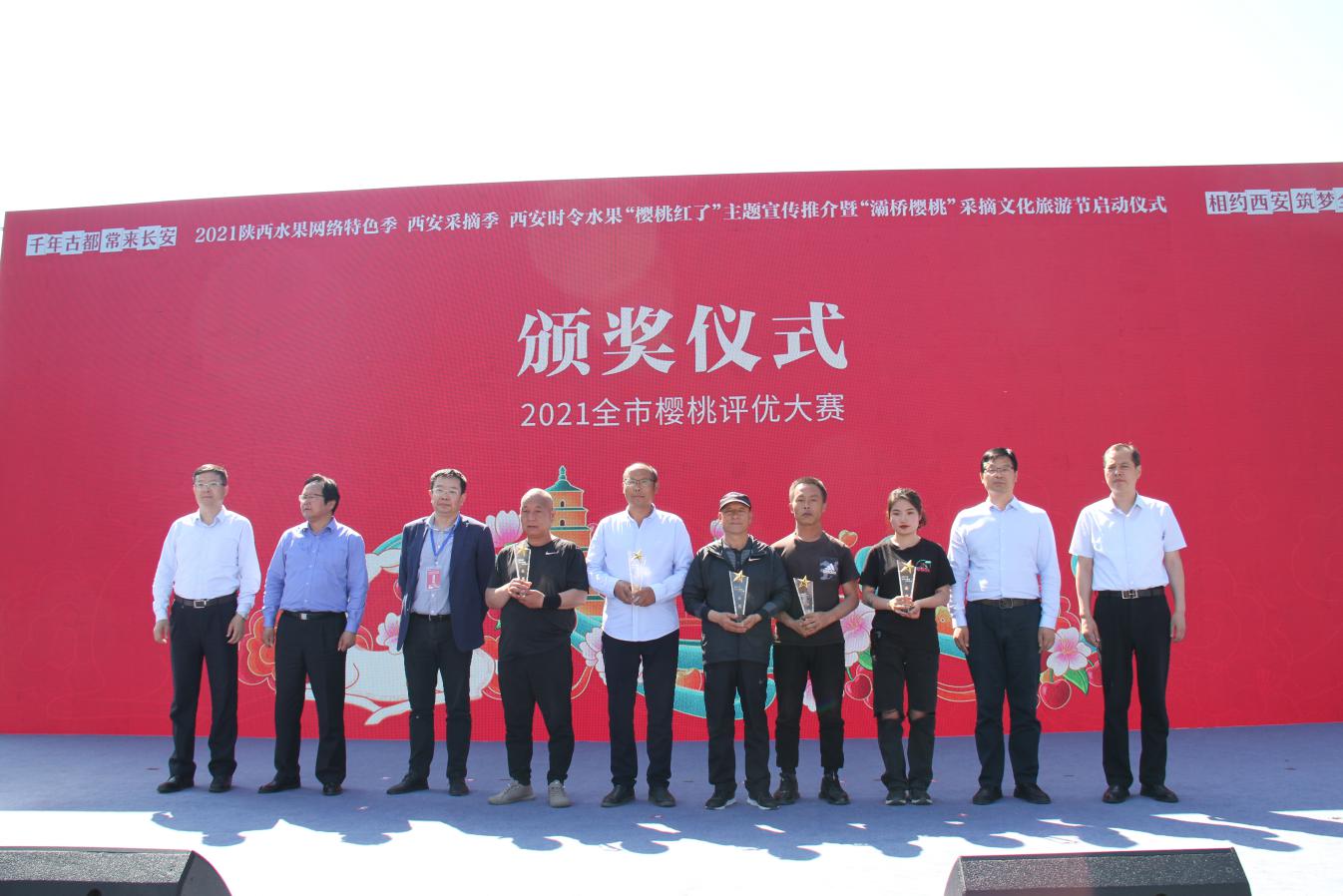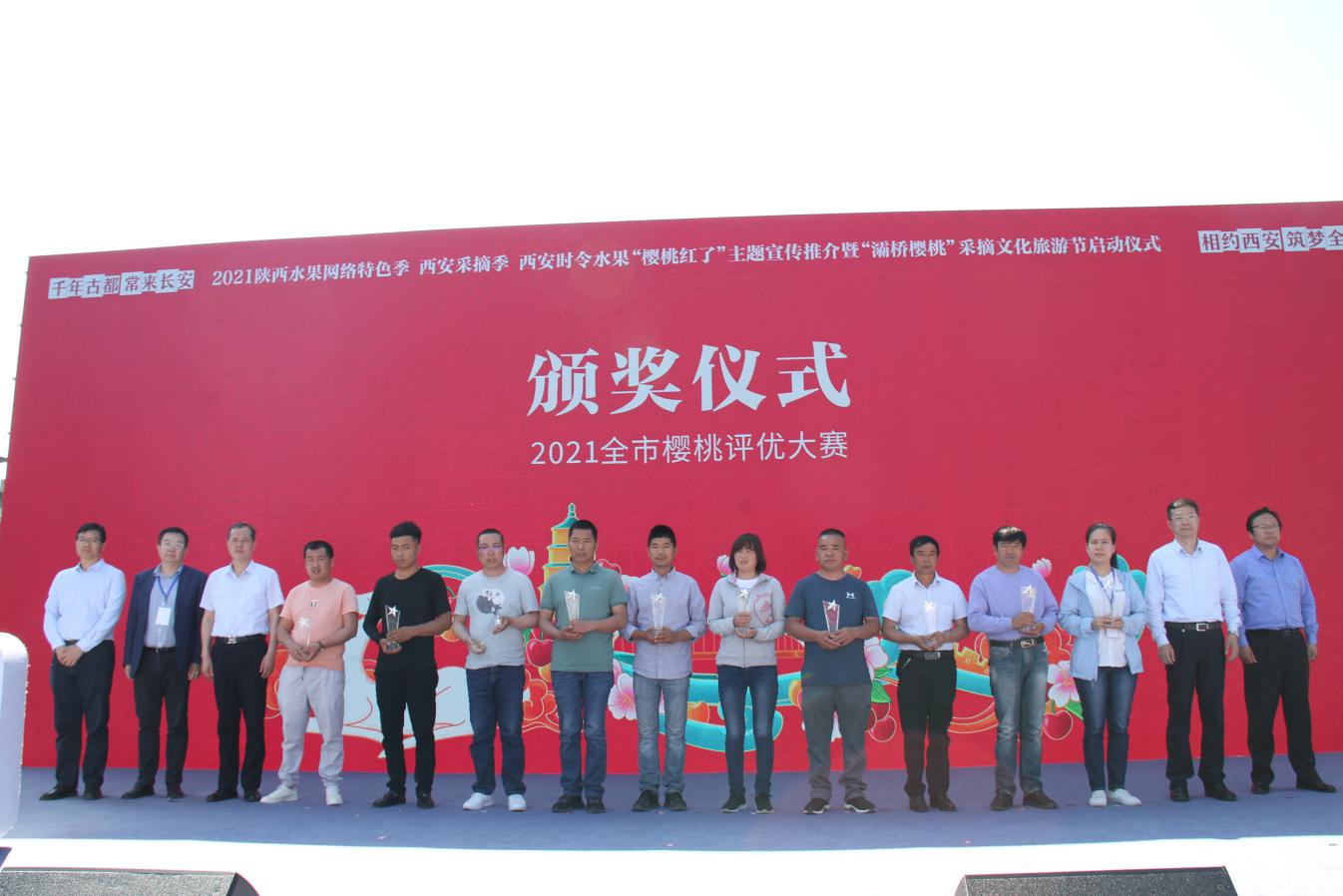 5月17日,在灞桥区白鹿仓举办的2021陕西水果网络特色季·西安时令水果“樱桃红了”主题宣传活动上,陕西省果业中心副主任周智孝现场宣布了2021全市樱桃评优大赛的获奖者名单,对获得金奖、银奖的生产者进行了颁奖。同时在推介会现场对本次评优大赛获奖樱桃进行了展示品鉴。