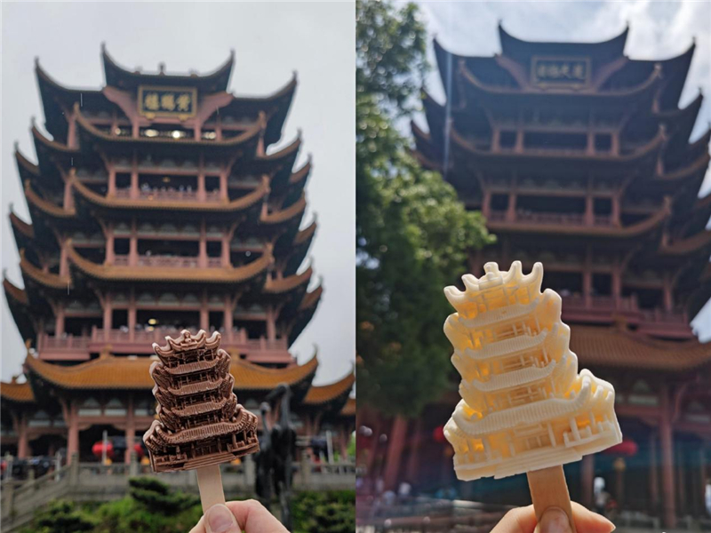 故人西辞(吃)黄鹤楼,“好可爱”“有仙气”“太酷了”……黄鹤楼雪糕与真身简直是一比一还原,咬一口,仿佛便品尽半个黄鹤楼的风光。