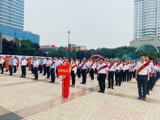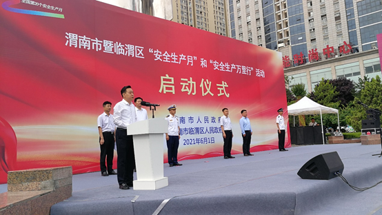 6月1日上午,渭南市暨临渭区2021年“安全生产月”和“安全生产万里行”活动在渭南市中心广场启动。