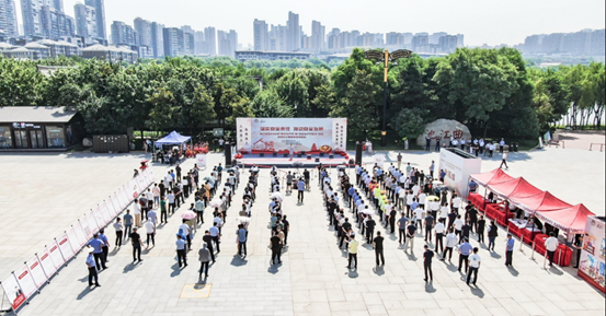 5月31日,西安曲江新区2021年“安全生产月”和“安全生产万里行”活动启动仪式暨宣传咨询活动在曲江池遗址公园中和广场举办。