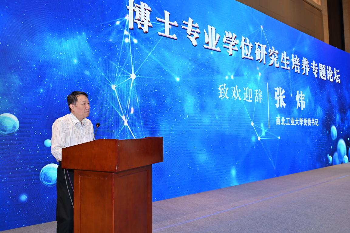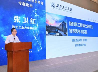 西北工业大学党委书记张炜,陕西省人民政府学位委员会秘书长袁宁,中国研究生院院长联席会2021年轮值主席院长、天津大学研究生院常务副院长郑刚参加论坛开幕式并致辞。