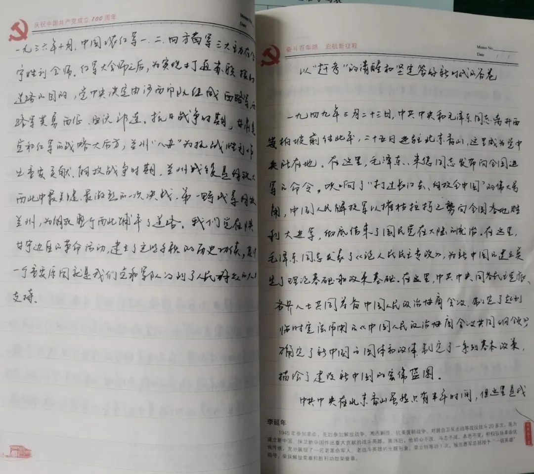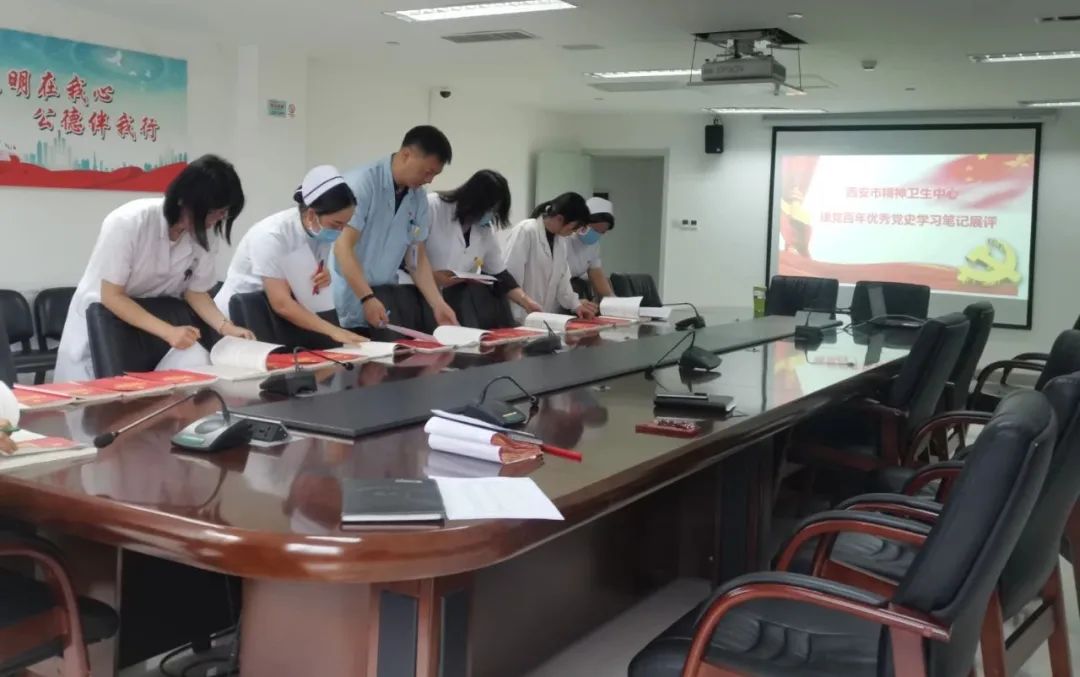 6月17日上午,西安市精神卫生中心党委开展了建党百年优秀党史学习笔记展评,对精选出的党史学习教育笔记进行了展览,该院支部书记们在翻看展出的学习笔记时,对党员们翔实的内容和工整的字迹由衷点赞。