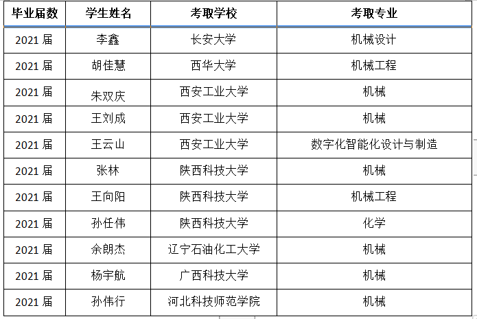 机械设计制造及其自动化专业学生积极进取,重视继续深造,近5年考研上线率平均在11.7%,录取率平均在8.5%左右,其中2021年考研录取11人(专业总人数111人),录取率为9.9%。