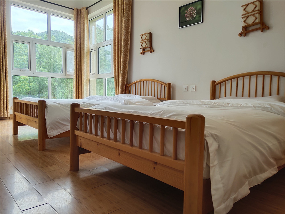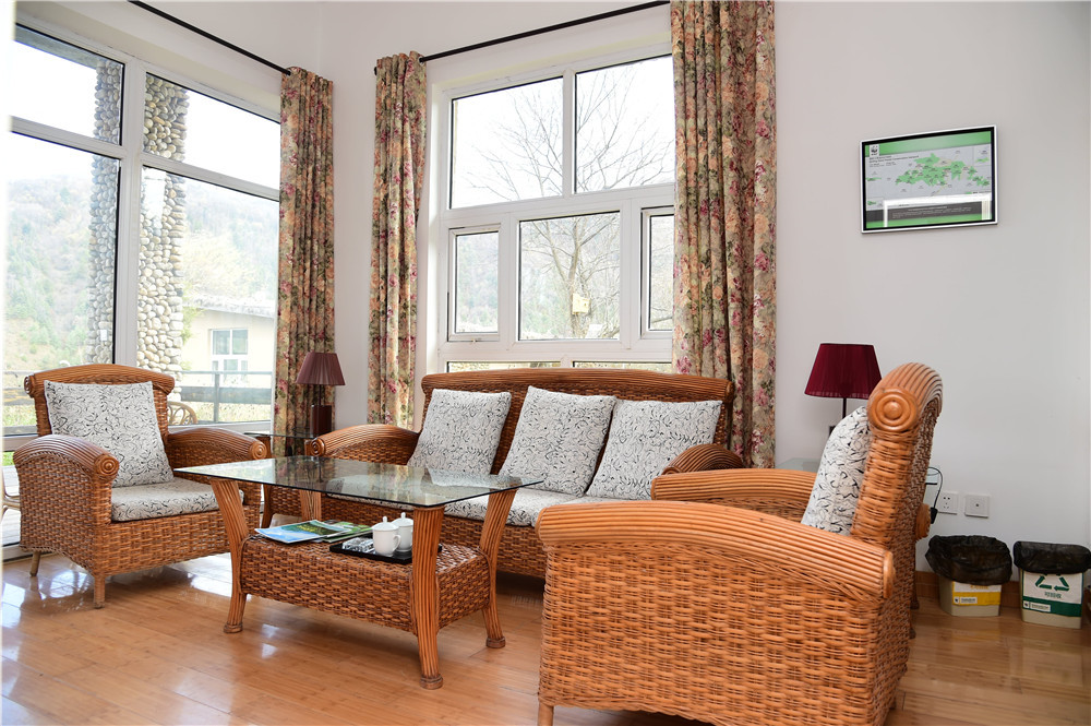 该民宿2006年由世界自然基金会(WWF)出资建设并于2008年正式运营的南太白山环境教育中心改建,交由陕西黑河国家森林公园经营管理,以生态保护、节能减排、环境教育为目标服务大众,保持与自然和谐,具有地域特色。现有民宿共10座,其中茅草石头房9座,含标准间5座,3人间2座,大床房1座;当地特色民居1座,含标准间4个。民宿以石头和泥巴为墙,顶覆茅草,前后有木质阳台,设置大落地窗,阳光可直接照进屋内采光,屋内藤制家具,原生态实木装饰,竹质地板,客厅卧室分离,太阳能热水或电加热24小时供应,洗手间干湿分离,水流无电辅助自然流淌,太阳能路灯全院覆盖。屋外有木质阳台,各房屋之间有竹子或者鲜花隔离,以石头小路相通,大集中、小分散、小规模,与自然融合,勾画出一幅和谐生态图。餐厅食材以民宿主人自种的原生态农家蔬菜为主,不使用化肥和杀虫剂,让游人亲自参与绿色无公害菜品采摘,体验生活,不使用一次性盘子、筷子、塑料杯等,让人吃的放心吃的开心,给人以返璞归真的感受。民宿内有一自然教室,可供游客参观学习、召开会议、品茶看书、放松身心,学习了解动植物知识和森林碳汇知识,了解野生动植物保护和环境保护知识,参与亲子游活动,接受自然生态教育,提升生态环境保护意识。
