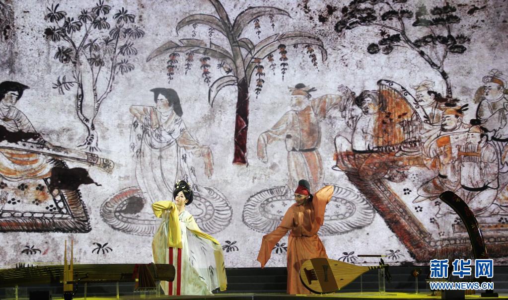 当晚,西安音乐学院根据唐代宰相韩休墓壁画《乐舞图》研究创作复现的舞蹈作品《满园春色乞婆娑》,在陕西历史博物馆建成开放30周年公益晚会上首演。该舞蹈作品舞姿雅致、乐风古朴,将《乐舞图》壁画以写实的音画形式,予以完整的研究整理与创作复现,全方位展示大唐乐舞的浪漫风姿与华美神韵。