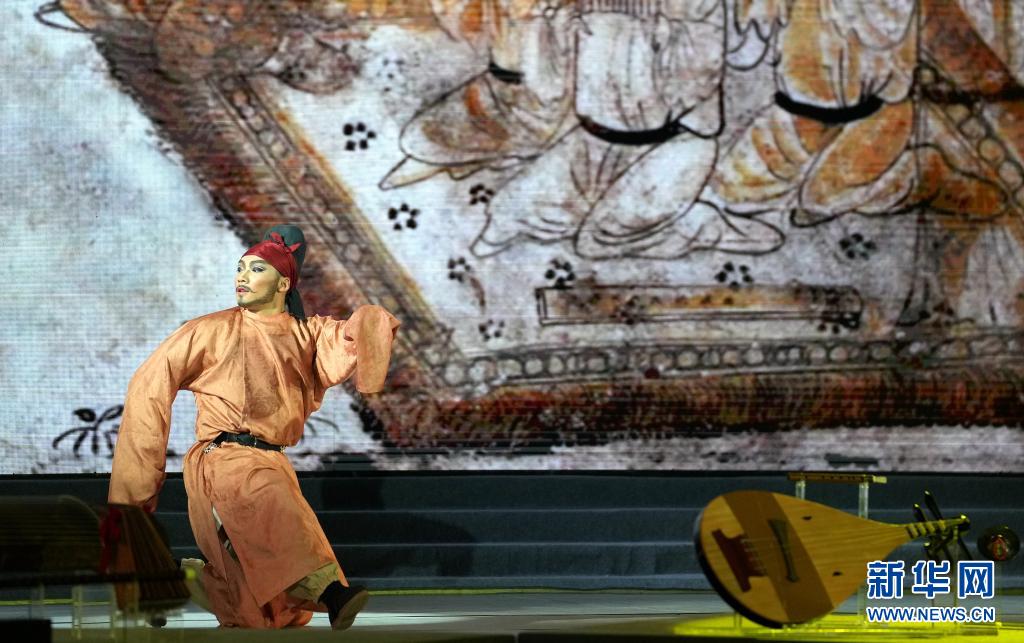 6月20日晚,在陕西历史博物馆,演员表演唐乐舞作品《满园春色乞婆娑》。