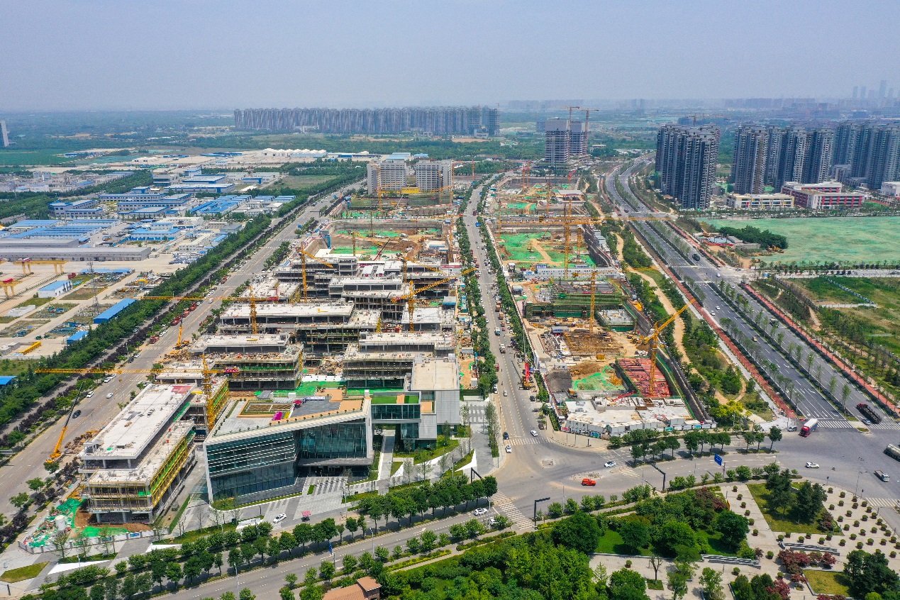 目前项目所有园区全部进入主体施工阶段,累计完成固投28.36亿,其中A区11栋楼于2021年5月全部封顶,J区42号楼97m高层建筑6月封顶,比原计划提前一个月,43号楼147m超高层建筑正在进行17层主体施工,计划9月30日封顶,成为周边第一栋封顶的超高层建筑,并在国家2021年第一批地方政府专项债申请中,通过国家发改委审核及陕西省财政评审。招商工作有序展开,项目已签约奕斯伟等行业龙头企业,与19家企业签订《合作意向书》,获取西安市科技创新发展规划项目、高新区集成电路设计产业创新服务综合体等7 项铭牌,陕西省工信厅工业转型升级项目等3项资金奖励。“十四五”末,将聚集行业龙头企业总部50家,入驻人工智能企业300余家,入园工业互联网公司150家,各类科技服务企业和机构150家,带动就业人口3万人,实现营业收入300亿元,初步建成新一代半导体产业策源地。