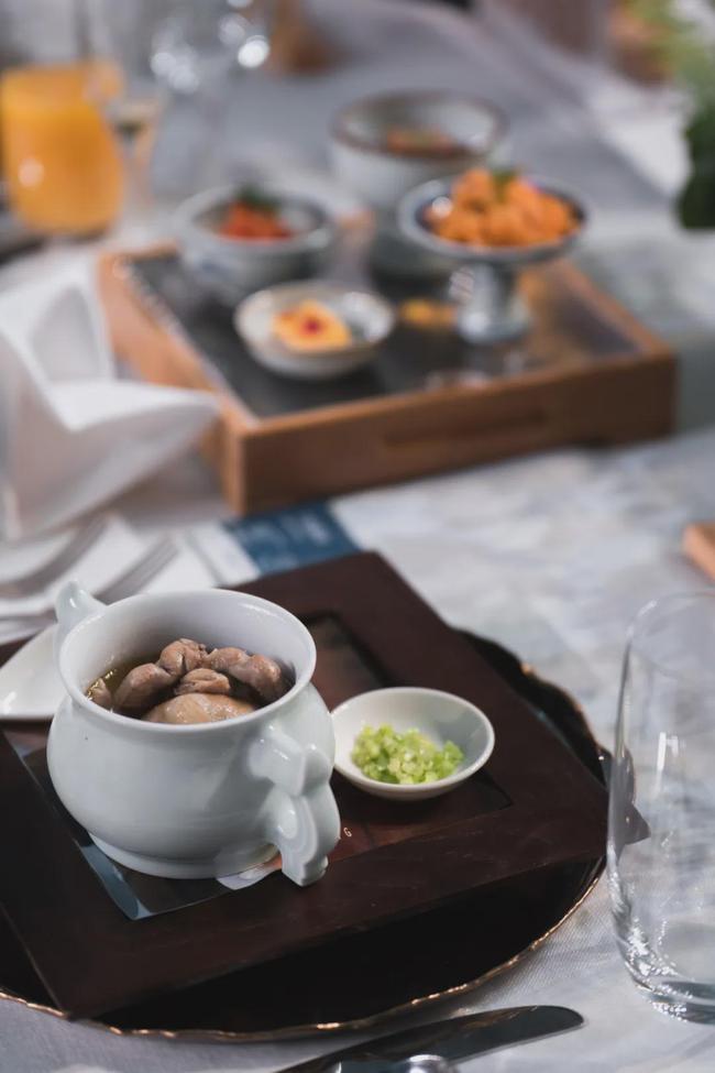 晚宴中每道菜都展现了不同地域的饮食文化,例如杭州的江南香鸡、润泽素鹅,以咸为主,略有甜头,“清淡”是杭帮菜的一个象征性特点;
