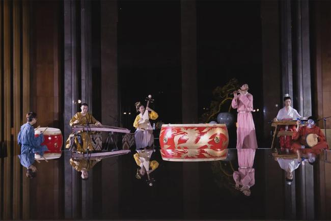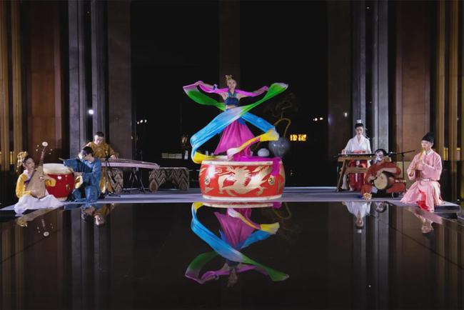 晚宴尾声,在唐风古韵,丝路设计的大堂酒廊里,嘉宾们共赏传统与现代交织的唐宫雅乐、鼓舞和水上唐舞,尽显大唐风范。让嘉宾们从美食悦景、雅乐佳音,全方位感受曲江流饮,长安胜景。