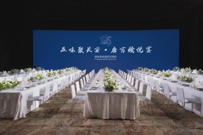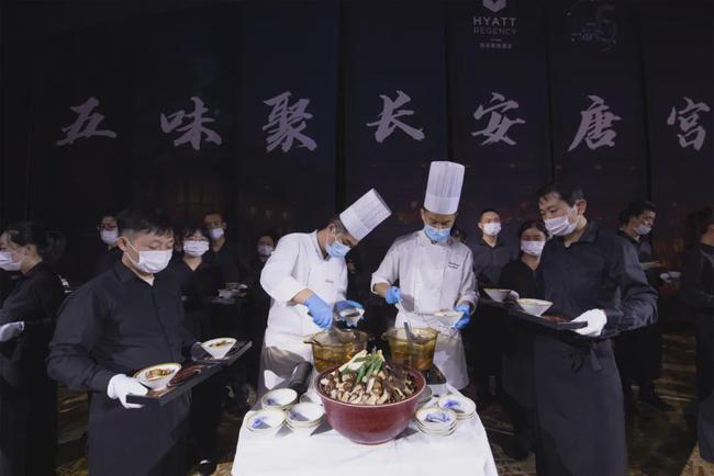 2021年7月15日,西安凯悦酒店大宴会厅举办五周年“五味聚长安唐宫飨悦宴”的活动晚宴,邀请了来自凯悦集团和金地集团的特邀嘉宾,合作伙伴及美食评论家和媒体等共飨盛宴。