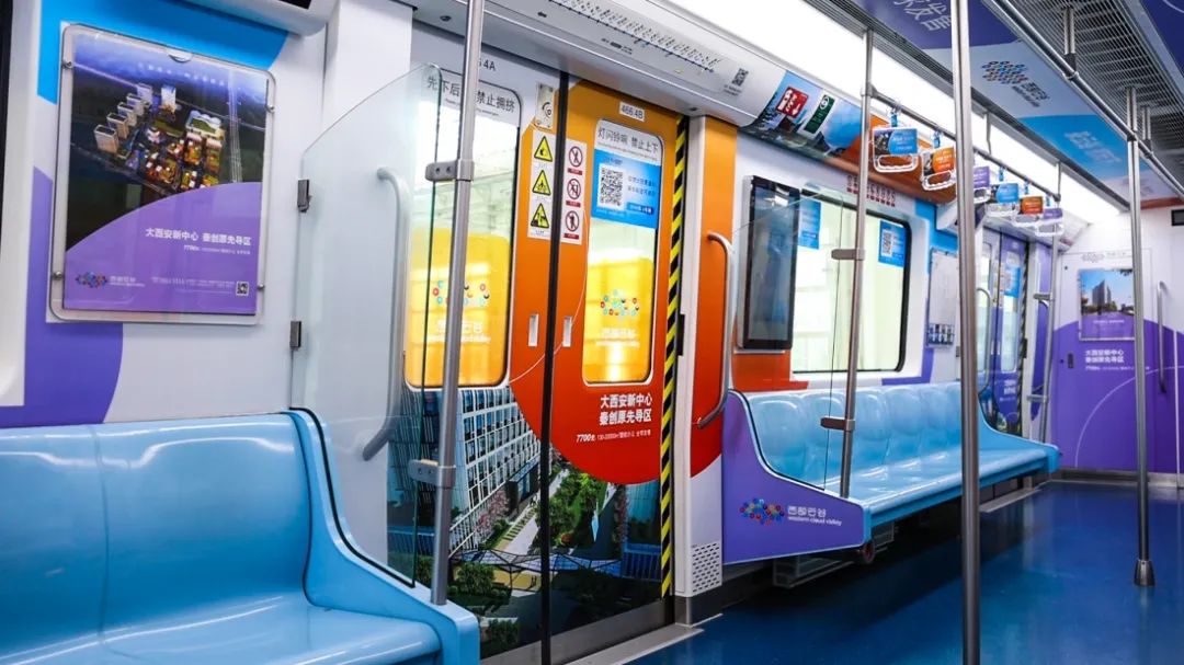 今天上午,西安地铁一号线,一辆满载“云谷元素”的列车,缓缓进站...