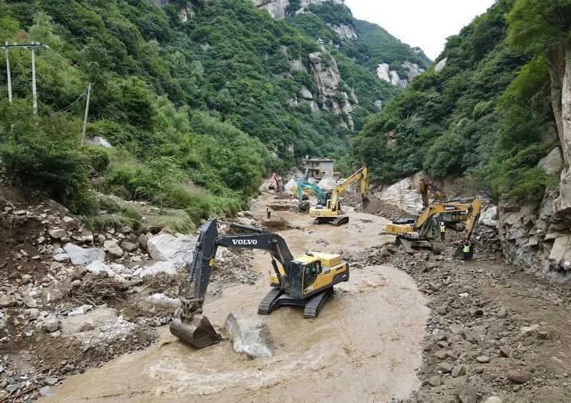 时间回到8月19日晚,西安市蓝田县普降大到暴雨,21日晚,蓝田县第二次遭遇强降雨天气,强降雨导致蓝田县境内101省道受损严重,水毁路段全长22公里,全线累计8.5公里路基全幅冲毁,3.3公里路基半幅冲毁,交通完全中断。抢通水毁道路是救灾“生命线”,西安市交通局紧急集结七个工作组,制定了“南北推进,重点突破,逐点抢修,加快贯通”的抢修工作方案并加快实施。