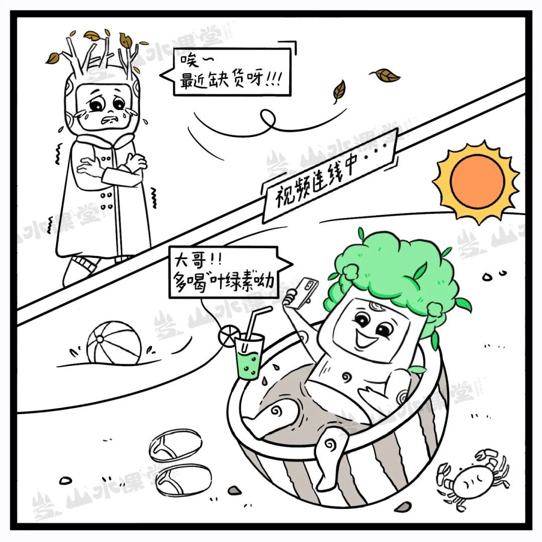 树叶呈现出什么颜色,主要看它们谁更“强势”。