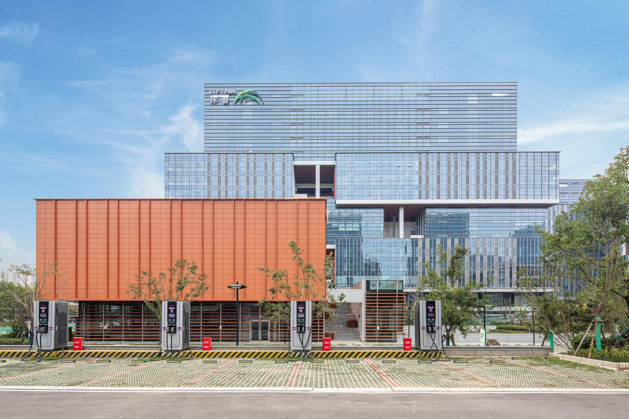 西安环普国际科技园位于丝路软件城板块核心区域,是一座集工作、生活、娱乐、社交于一体的国际化科技商务园区,分一期、二期、三期进行开发,总建筑面积为46万平方米,此次获奖的扩建项目为二期,共计18万平方米。目前,园区先后入驻了包括8家世界五百强企业、12家软件百强企业、21家外企在内的170余家软件和信息技术服务类企业以及40余家配套商业客户,其中包括海康威视、施耐德电气、活跃网络、浪潮软件、软通动力、芯派科技、特锐德电气、中科芯研究院等各行业研发型领军企业。