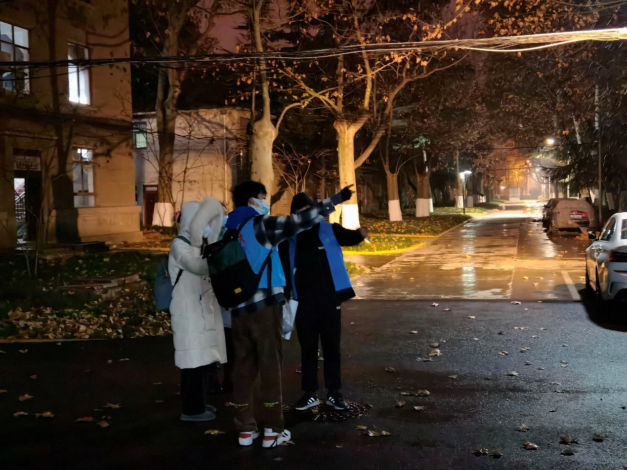文治书院西18-323宿舍的李婉婷、庞应冉、李青卓、刘薇四名党员积极参与了考研第一天上午的志愿服务。凌晨5点半,四人穿上厚棉袄、戴上围巾帽子、拿着雨伞便赶往集合点领取工作任务,在规定的站点为外校考研学子们指路和核验健康码。“沿着这条路直走大概5分钟就是西二楼”,刘薇站在路口为考生们一遍遍指引考场方向。“我们做志愿者帮助考试的学长学姐,同样也有志愿队长和老师们来来回回为我们提供暖宝宝、热水袋还有姜汁可乐,时刻关心着我们的身体健康。任风雪再大,也盖不住交大人的温情。”李婉婷感动地说。