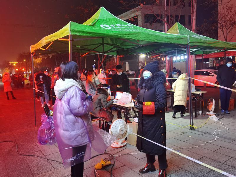 12月25日,西安气温骤降,逆行的“大白”们顶着风雪,依然战斗在第一线。在碑林区西荷小学,正在进行核酸检测的“大白”们来自中国人寿西安分公司体检中心。