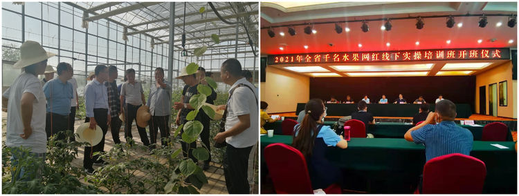 市果菜发展中心发挥牵头负责职能,克服单位人员紧缺困难,抽调8名干部服务8个果菜园区,成立由主要领导任组长的专项工作组,与8个园区三方签订服务责任书,明确了各自职责和任务。为快速深入推进入园服务走深走实,3 月份,组织召开了全市果菜产业高质高效发展推进会;6月份,又组织部分技术干部和园区负责人,前往咸阳、杨凌学习观摩新品种、新技术、新棚型,为推进设施农业高质量发展提供新思路。另外,组织果农、果业工作者330余人参加了全省千名水果网红培训;组织重点果业企业参加了全省苹果4.0智能选果线操作技术培训会和“稳企安农,护航实体”陕西苹果期货大讲堂等,多举措推进果菜产业提质增效。