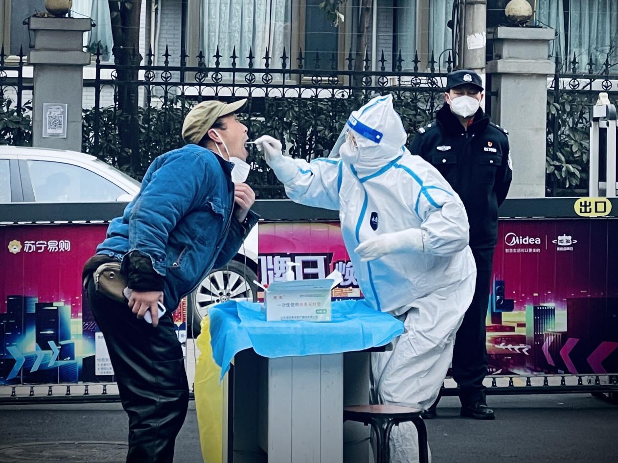 “您张嘴、抬头、说啊。”1月19日,在西安高新区皇家花园核酸检测点,全副“武装”的核酸采样员王瑞娥正耐心地为小区群众进行咽拭子采样。只见她将棉棒迅速地伸进检测者口中,擦拭两腭弓、咽及扁桃体的分泌物,随后麻利地将棉棒放入试剂管密封,整个过程不超过30秒。这样的动作,她一天要重复无数次。